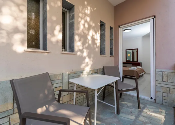 纳亚斯公寓 新马尔马拉斯设有免费停车场,阳光露台和高尔夫球场,距离Porto Carras Beach有5分钟车程. 纳亚斯俯瞰大海,距离Porto Carras Winery不远.